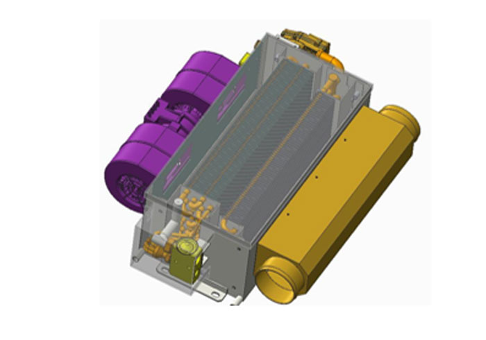 基于农林机械工作环境——高温、高振动、高粘附性尘土、絮状农作物碎屑等使用场景特性,开发出满足拖拉机的防脏堵、大波距单层和双层平行流冷凝;满足小麦水稻机、青储机等收获机械的大片距铜管铝翅片蒸发芯体、冷凝器,配有新风增压装置保证驾驶室正压,避免外界粉尘进入,保证室内空气质量;可选配免维护正反转自动除尘模块,提高除尘的环境适应性;HVAC总成可满足布置于驾驶室前仪表台内、顶棚内、顶棚外等结构形式,覆盖了国内外主流品牌驾驶室类型,广泛应用于不同马力段拖拉机,以及不同喂入量的小麦、水稻、青储机上,可满足不同工作场景农机空调匹配开发需求,累计装车5万台,产品稳定可靠。