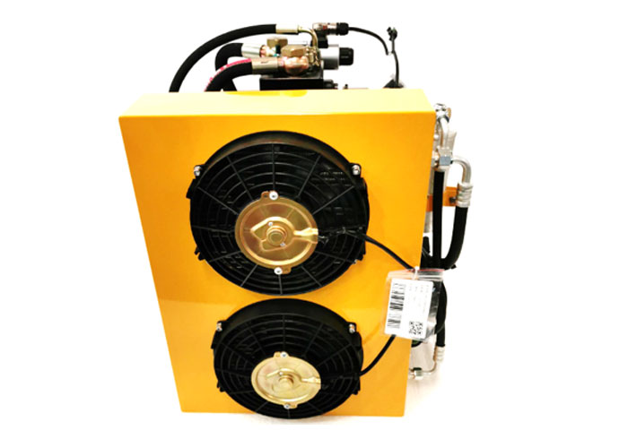 基于汽车起重机上车360º旋转吊装特性,空调驱动依托液压油和电,该系统液压驱动、电控冷暖,解决上车操纵室-40∽+52℃环境下制冷、取暖需求,填补国内技术空白,拥有自主知识产权,形成标准化产品;系统经2003年投放至今发展4代,累计30万台装车,成熟、可靠,适应全球工况,尤其中东高热沙尘工况,延伸使用至石油压裂车等特种机械。